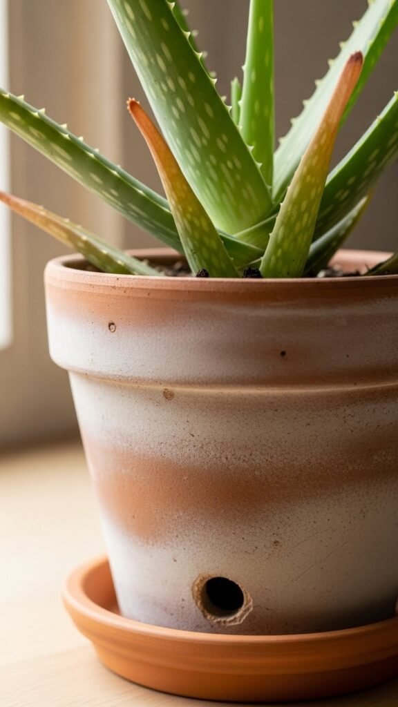 🔹 Useful Amazon product: A terracotta planter with drainage and saucer is perfect for indoor aloe and lasts for years.