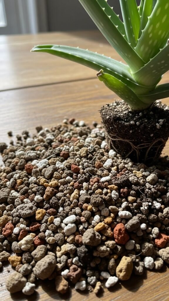Regular potting soil held too much moisture for my aloe. Switching to a cactus and succulent soil mix made a noticeable difference in root health and growth.