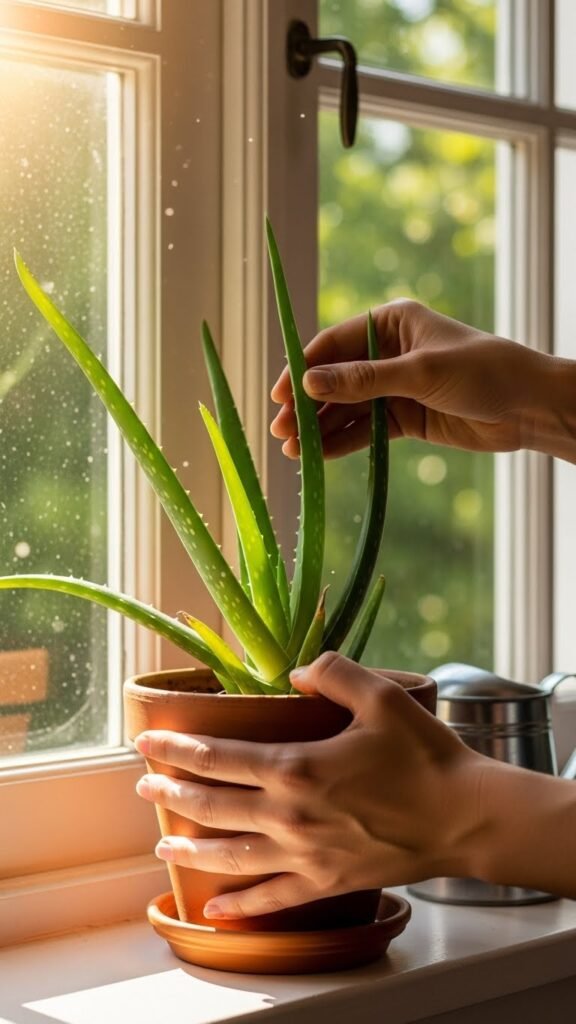 The biggest change I made was fixing the light. Indoor aloe vera plants love bright, indirect sunlight. I keep mine near a south- or west-facing window where it gets plenty of light without harsh afternoon sun.