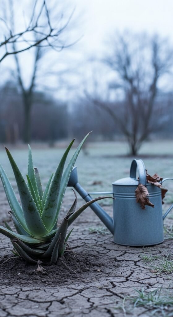 Aloe vera goes into dormancy during winter. This means it needs very little water. I water my outdoor aloe only once every 3–4 weeks, and only when the soil is completely dry.