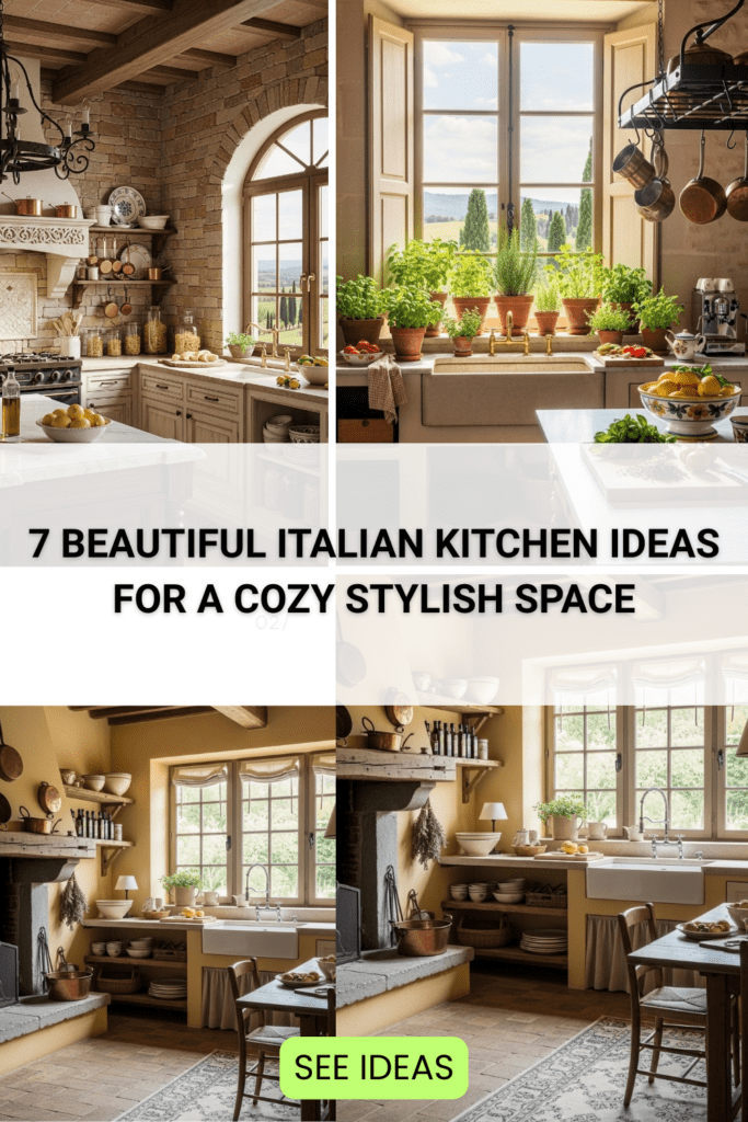 These Italian kitchen ideas show how simple details like wood cabinets, stone tiles, warm colors, and natural decor can create a kitchen that feels cozy, stylish, and timeless.