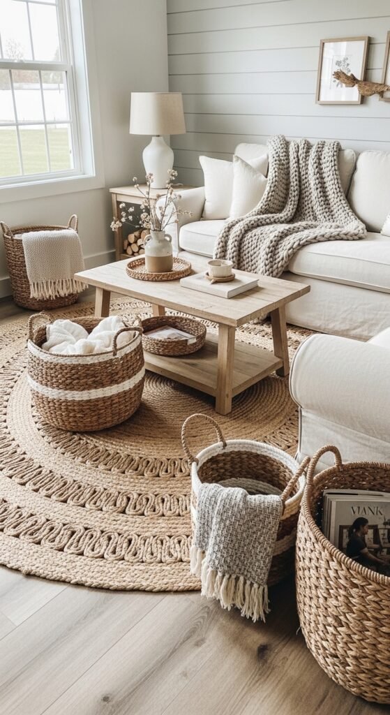 They bring warmth without adding bold color. In one makeover, adding a round jute rug instantly softened a minimalist room.
