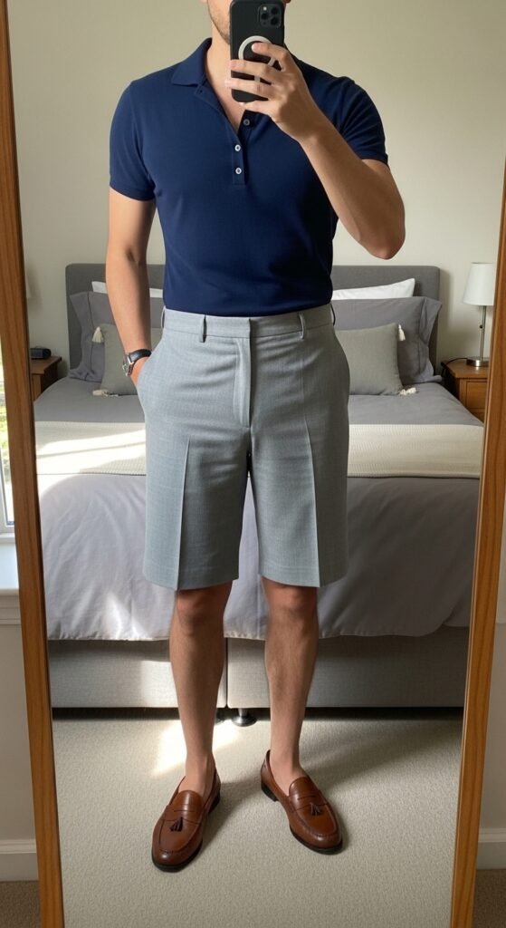 2. Polo Shirt + Tailored Shorts + Leather Loafers