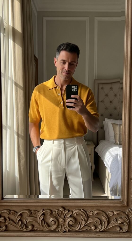 I tried a knit polo with pleated trousers, and it looked effortlessly elegant without being stiff.