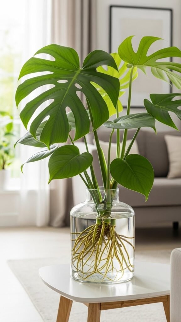Water-grown Monsteras are also popular for minimalist décor and indoor plant styling.