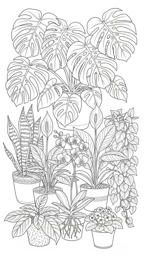 Pair these pages with other plant-themed coloring collections, like houseplant coloring pages printable or plant coloring pages for kids free printable, for a complete indoor plant coloring experience.
