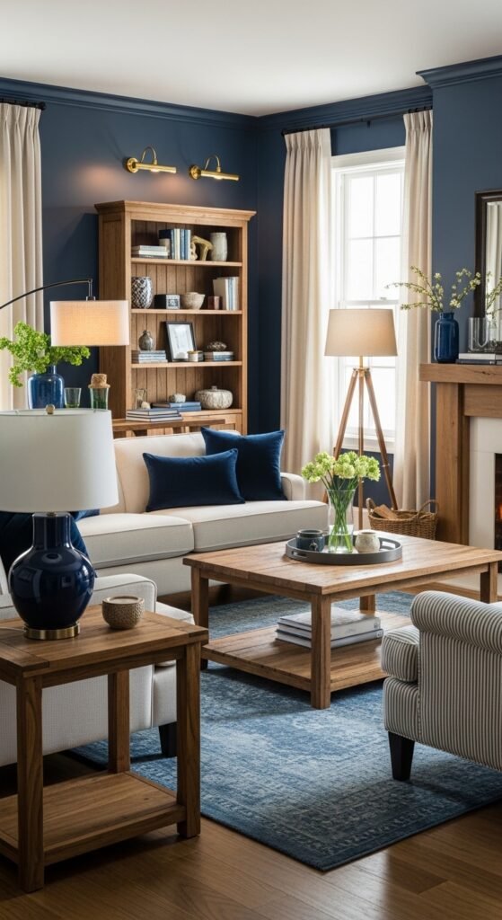 Navy blue is one of my favorite colors for a living room. It feels rich, calming, and timeless all at once. When I first introduced navy into my space, I realized how easily it can make a room look more polished and cozy—without feeling too dark if styled the right way.