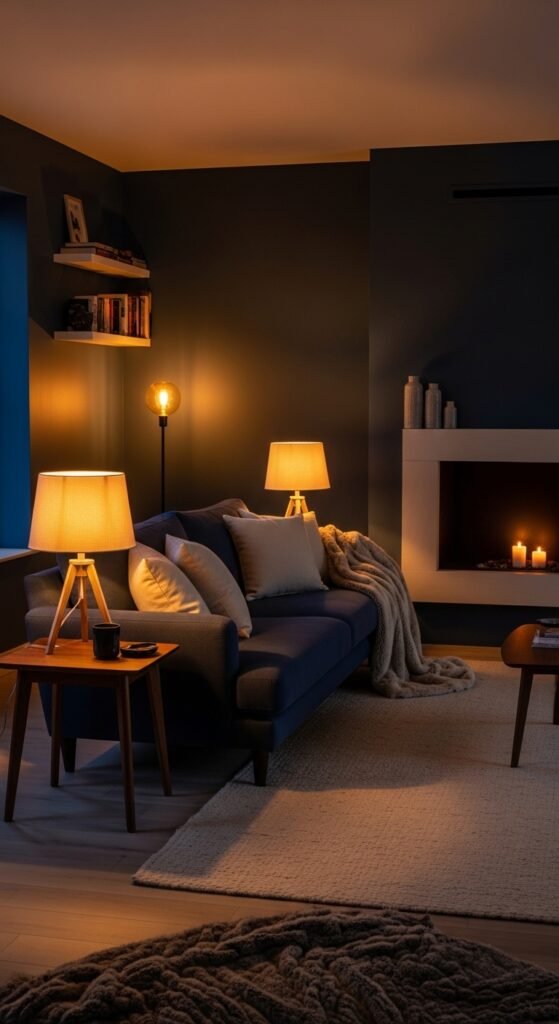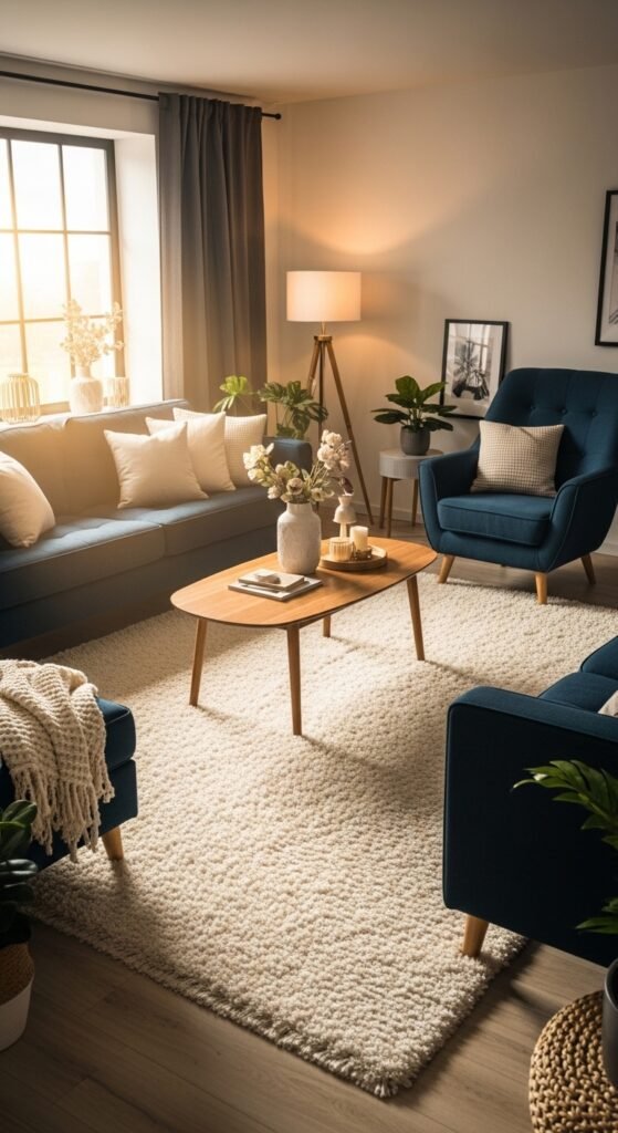The key I learned is balance. Navy works best when paired with lighter tones, warm textures, and good lighting. These are the navy blue living room ideas I personally used to create a space that feels both stylish and comfortable.
