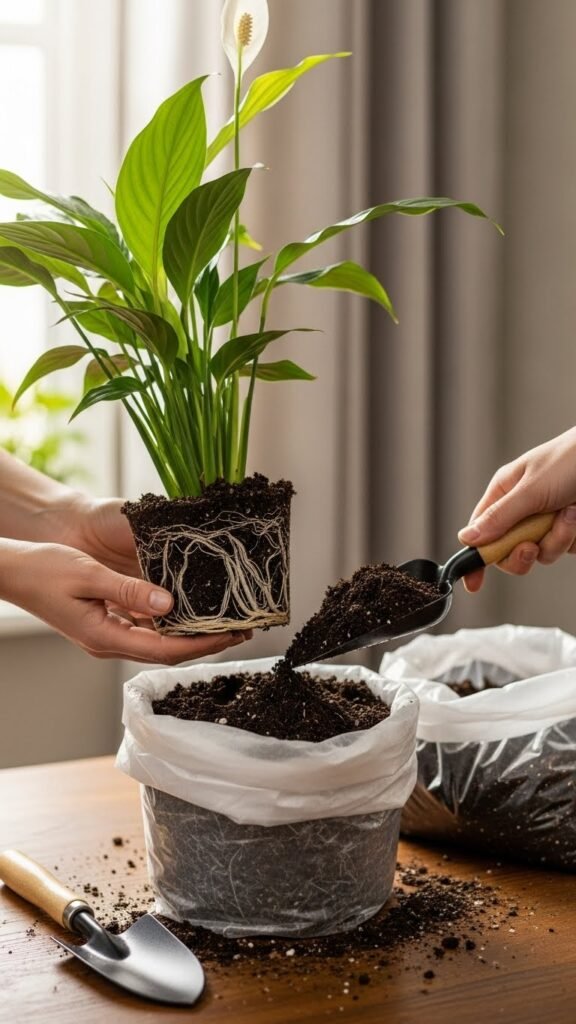 I usually repot every 1–2 years, using fresh, well-draining indoor potting mix. After repotting, my peace lily often rewards me with new leaves within weeks.