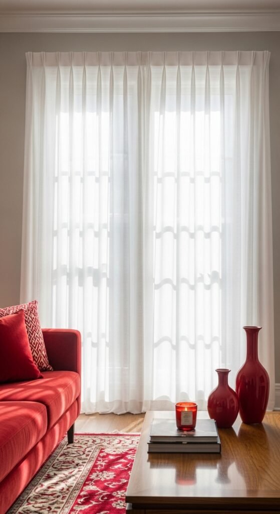 This helps balance the boldness of red and keeps the room from feeling too heavy.