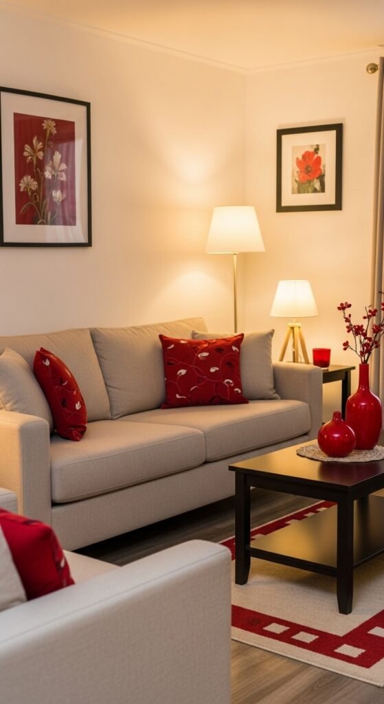 Red is a powerful color it can make a living room feel warm, dramatic, and full of personality. When I first started using red in my space, I was careful not to overdo it. The key I learned is balance: using red as a highlight while keeping the rest of the room calm.