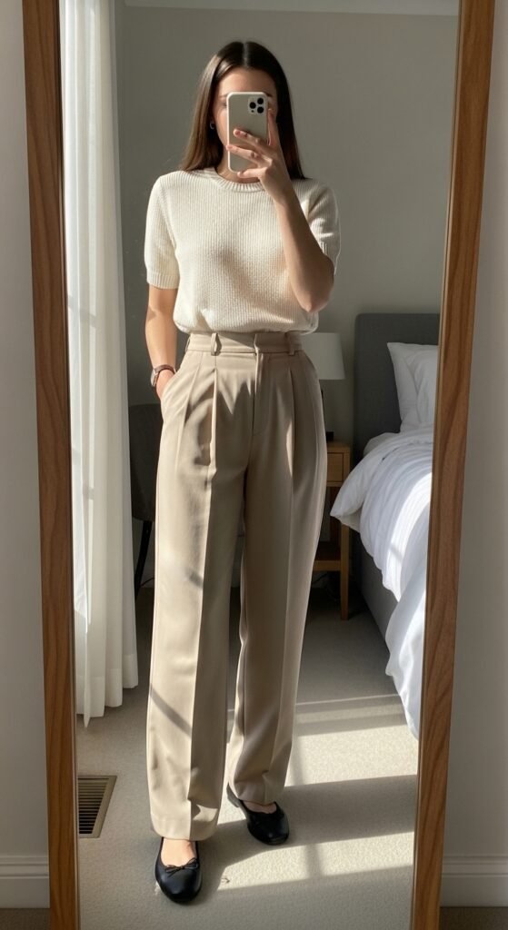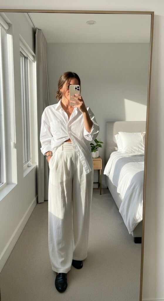 3. Button-Down Shirt + Wide-Leg Pants (My Go-To π€)