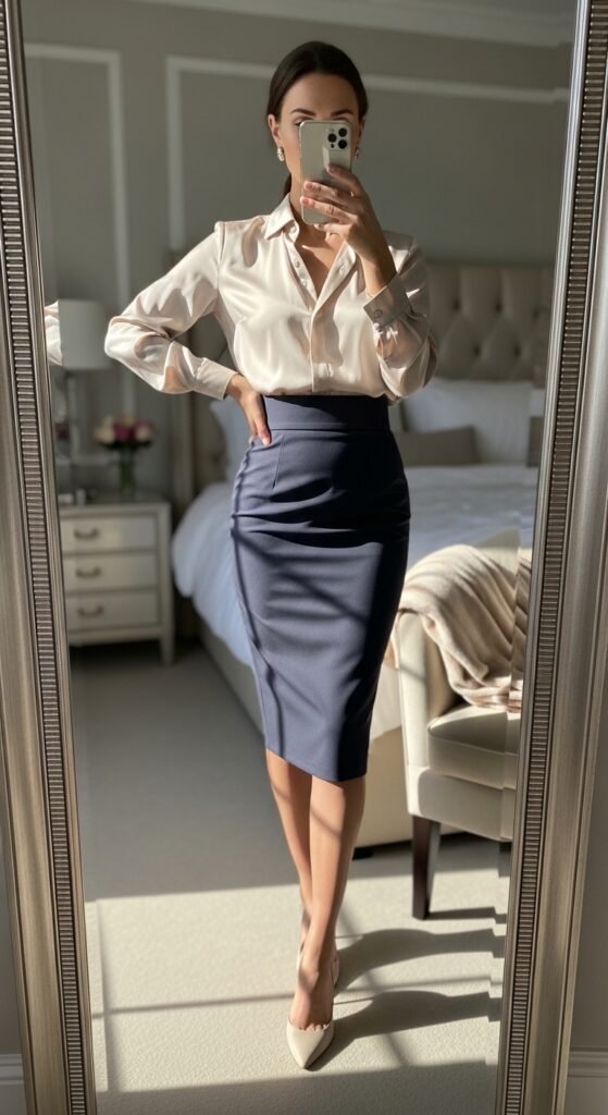 The blouse keeps things airy, while the pencil skirt maintains a professional silhouette.