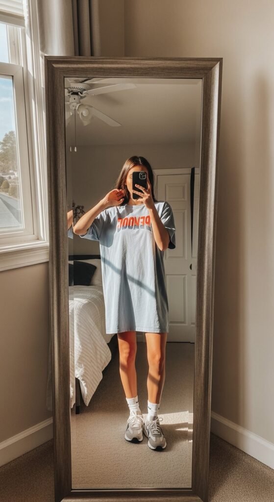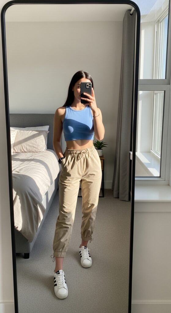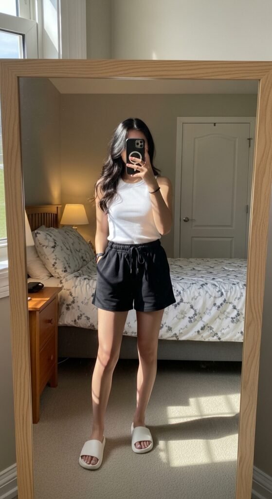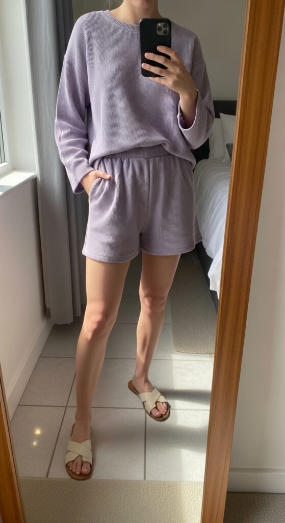 This is one of the easiest outfitsβ€”no thinking required. Cotton keeps sweat minimal and the matching set looks instantly put together.