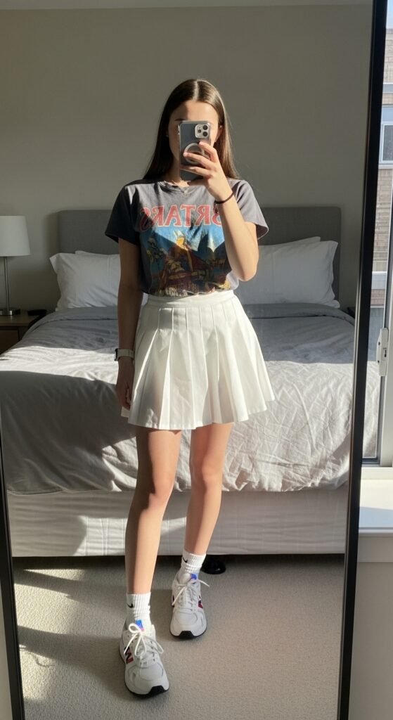 9. Graphic Tee + Tennis Skirt + Sneakers