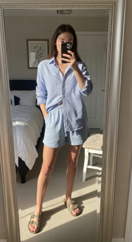11. Button-Down Shirt + Relaxed Shorts + Sandals