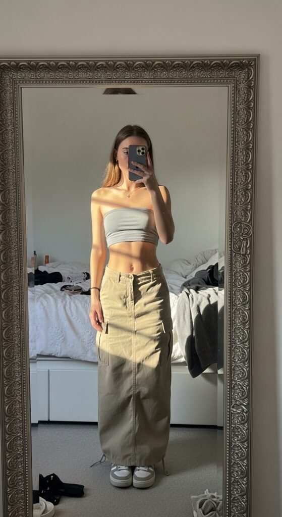 4. Bandeau Top + Cargo Skirt + Sneakers
